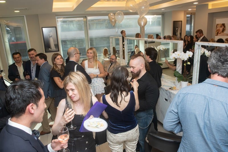 The cover party, which took place at the modern and airy 2,500 square feet salon, featured a cocktail reception and hors d’oeuvres by Benjamin Steakhouse and luxury chocolates by MarieBelle Chocolates. Guests were invited to view the salons private VIP Hair Suites, hair extension styling bar, beauty concierge department, beauty lounge and Couture Hair boutique.